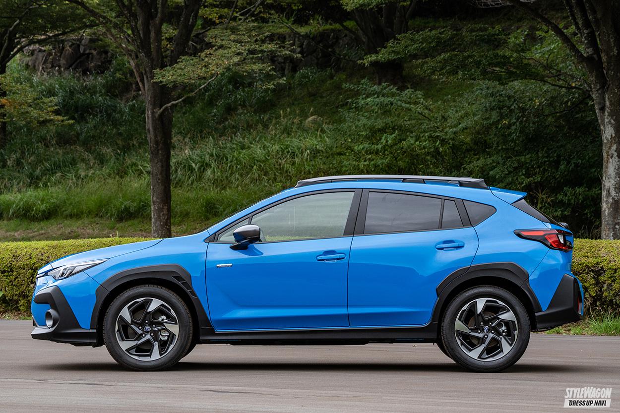 サイドのクラッディングが拡大し、SUVらしさを強調しながら、ウエストラインが後方でグッと跳ね上がるなど、キャビンを小さく見せる工夫も印象的だ。また、全幅を1800㎜に抑えることで日本での取り回しに配慮しており、それでいながら最低地上高は200㎜と十分な高さを確保している。