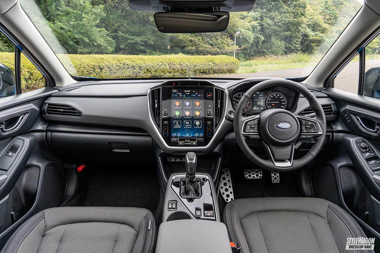 パッケージングは従来型とほぼ同等で、後席の広さや荷室の使い勝手もほとんど変わっていない。インパネで目を惹く11・6インチのセンターディスプレイは、レヴォーグなどよりも階層を少なくし、エアコンなどの操作性が向上している。