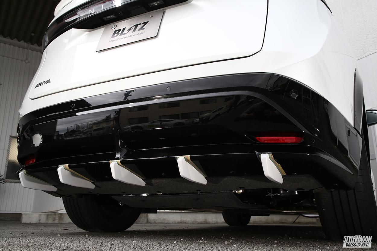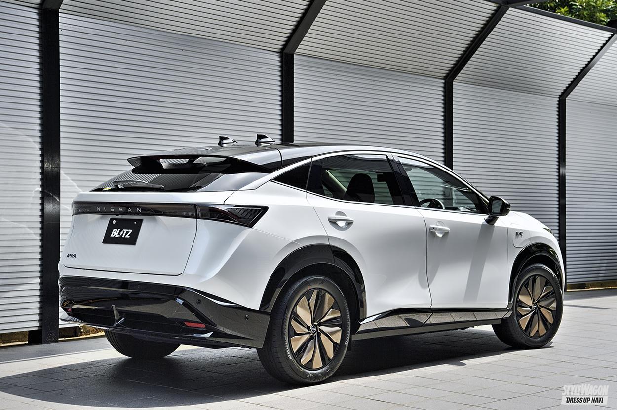総合チューニングメーカーのブリッツは国産・外車と多くの車種を手掛け、新型車の素早いパーツ開発も大きな強みのひとつ。そんなブリッツが次なるターゲットに選んだのが日産「アリア」。ブリッツはEV車へのパーツ開発も積極的に力を入れており、日産リーフ登場時もEV化が進むことを見据えたブリッツ流カスタムを提案。このアリアにおいても、EVカスタムの期待を高めてくれるパーツラインアップを予定している。