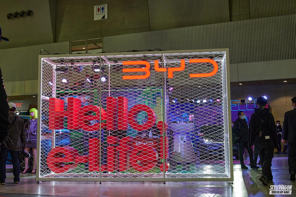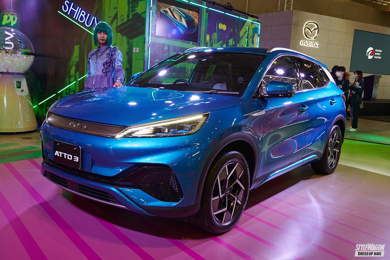 “ビルドユアドリームス”を社名の由来とするBYD。自動車メーカーとしては、電動車専門のメーカーだ(本国ではBEVだけでなく、PHEVも設定)。注目は発売間近の『ATTO3』。スポーティなエクステリアが特徴で、メリハリの効いたラインなど、デザイン性の高さがまず目につく。ちなみに、この複雑なパネルは、日本のTATEBAYASHI MOULDING(タテバヤシモールディング)の金型を活用しているように、日本との関連も深かったりする。
