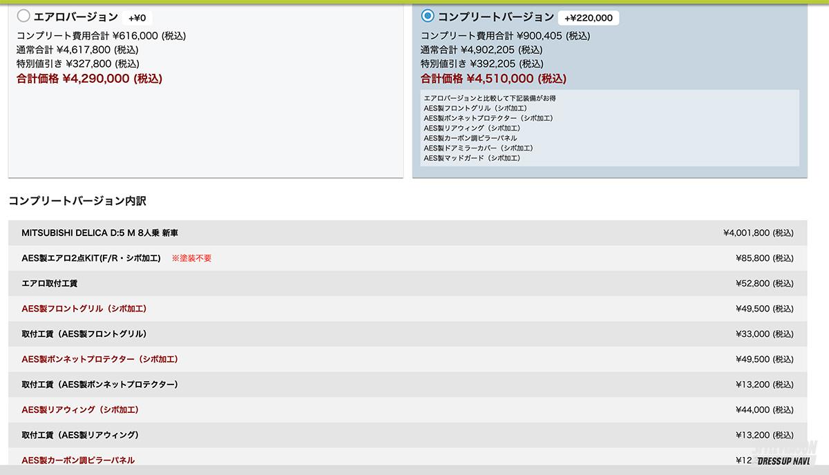 デモカーと同じ仕様にするといくらか? 例えば少し予算オーバーだから、とりあえずはホイールを後で、などの選択をして料金をシミュレーションできるのもポイントだ。エアロ付きコンプリートの価格429万円は、最小構成の価格だ。デモカーと同じシボ加工などをすると451万円。