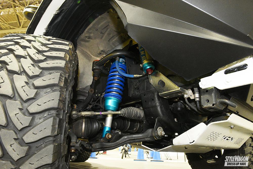 WHEEL●SCS・BR6(17×9.0J-38) TIRE●トーヨータイヤ・オープンカントリーM/T(35×12.50R17LT) EXTERIOR●サイド&ヒッチメンバー=GIギア、グリル&フェンダー=メーカー不明、ルーフキャリアー=ヤキマ ほか