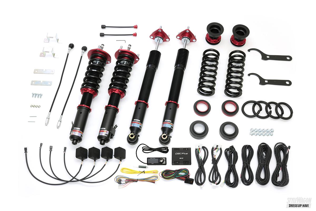 ▪仕様 全長調整式、減衰力32段調整、強化ゴムアッパーマウント、バネレート(前後6.0kgf/mm)、車高調整範囲(前-70〜0mm/後-60〜-25mm)