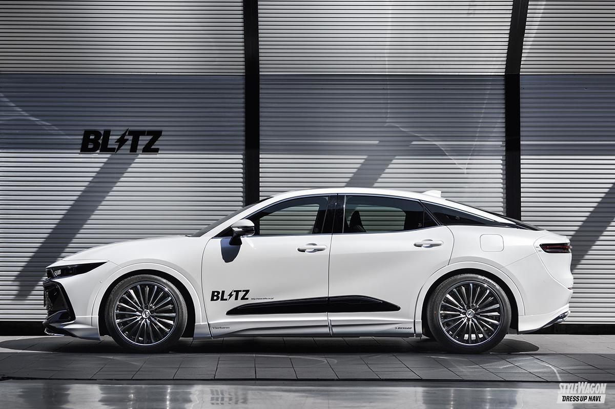 昨年登場した16代目クラウンクロスオーバーは、新開発プラットフォームの採用や、FRからFFベースの4WDへの変更、後輪操舵のDRS搭載など、従来のセダンとは異なるキャラクターに仕上がっているが、その最新クロスオーバーに対して、絶妙なローフォルムと乗り味を与えてくれるのがブリッツの人気車高調、ダンパーZZ-Rだ。