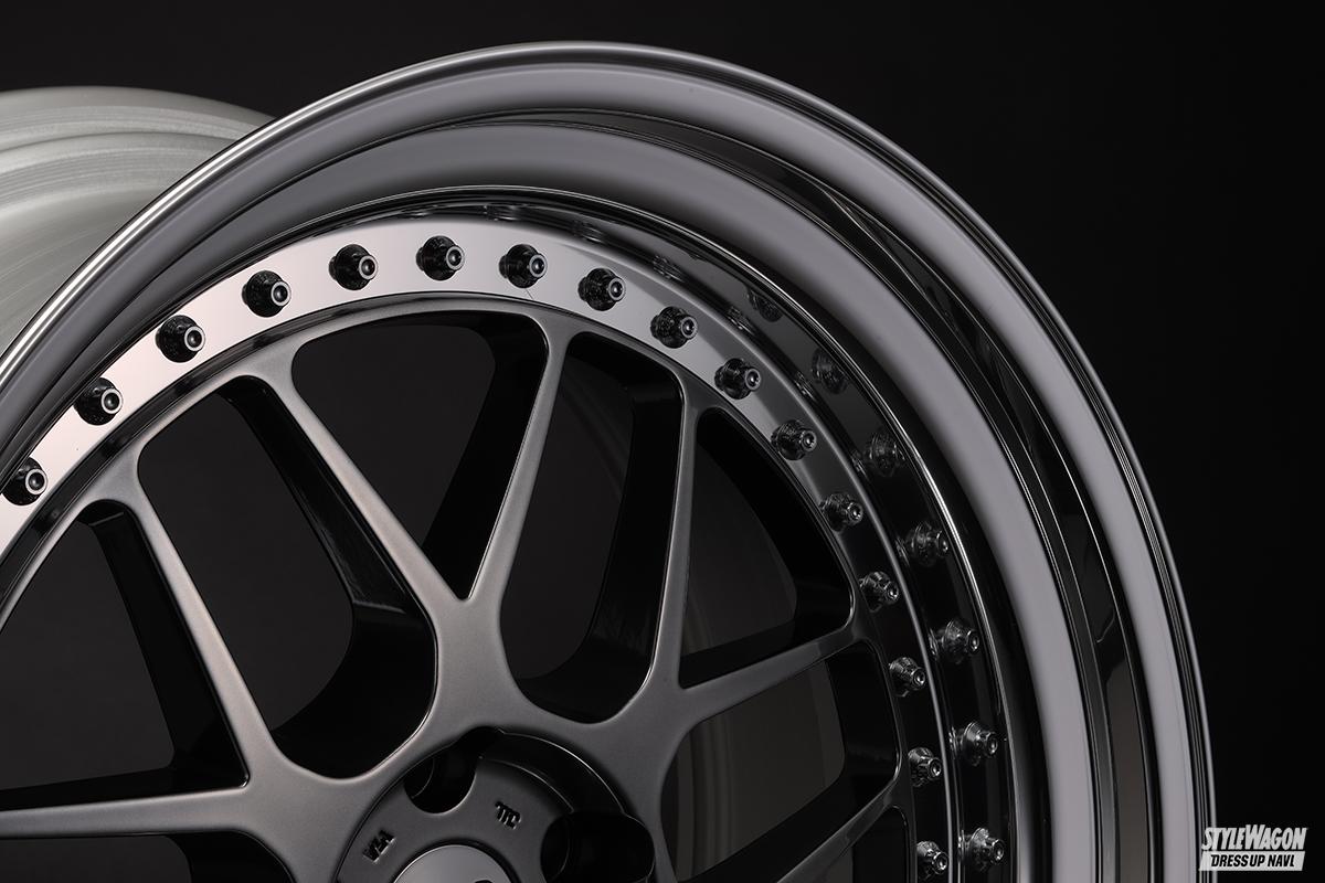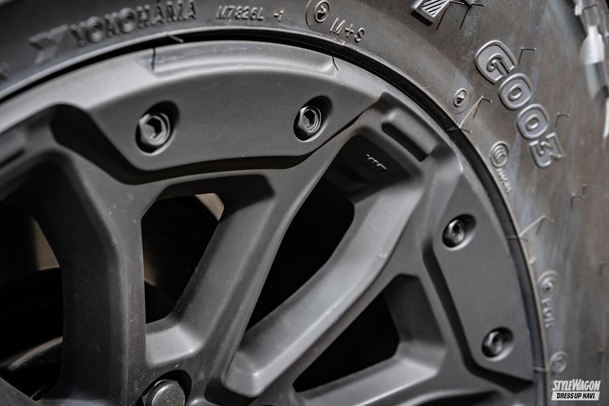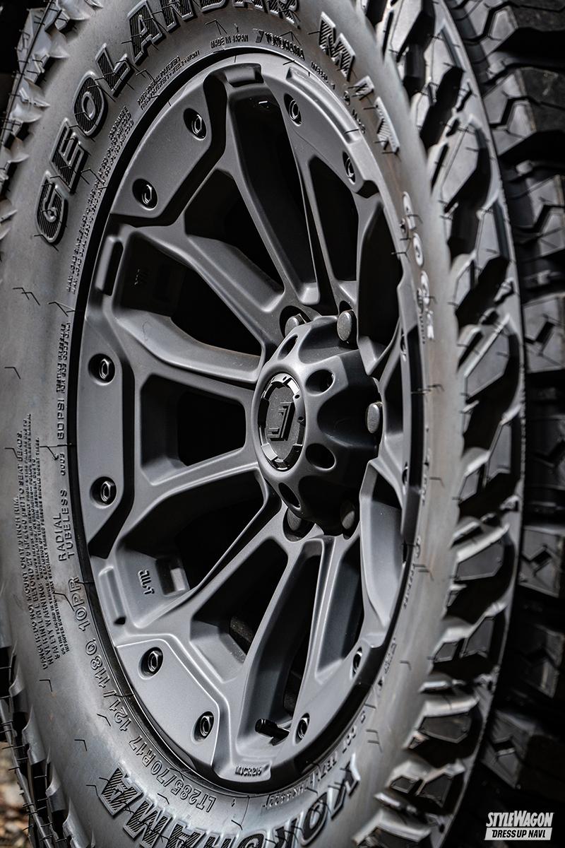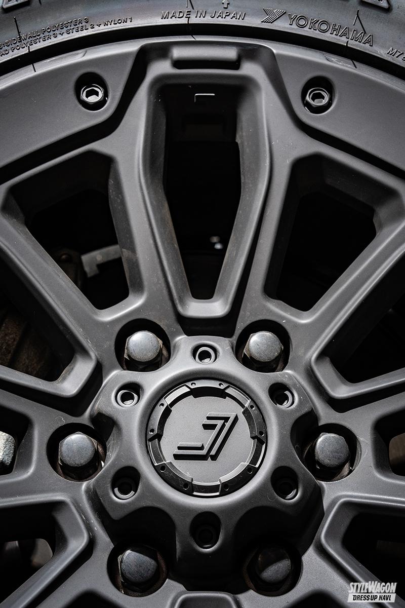 ジープ乗りに人気のオフ系トータルブランド、ジェップセン。ブランド2作目となるホイール、MJCR#216には、専用デザインを取り入れた150系プラド&ハイラックスサイズの17インチをラインアップする。専用としてまでこだわったのは、コンケイブフェイス。6本のツインスポークは、ホール周囲にエッジを効かせたリブを設けるなどタフなデザインだが、そのタクティカルギア感のみならず、センターに向かって落とし込まれるコンケイブフェイスを極限まで突き詰めたことで、力強さと美しさを併せ持つ。カラーは総マットブラックのステルスブラックと、リムエンドのみ切削&マットクリア処理を施したフラットブラック/TMCの2色。どちらも輝きを抑えた渋い色味だ。