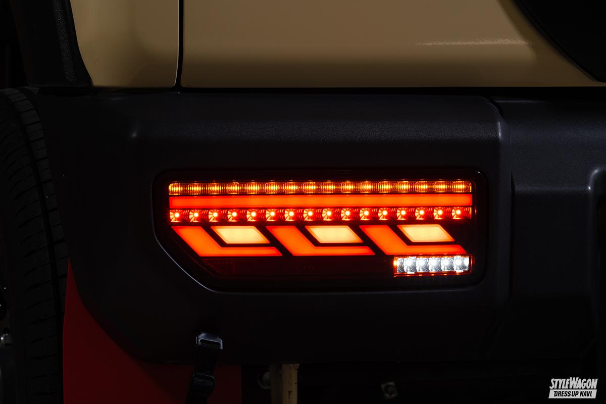 横イチ&L型3連のスモールランプが個性的なフルLEDテールランプ。ウインカーはシーケンシャルと点滅の切替式。