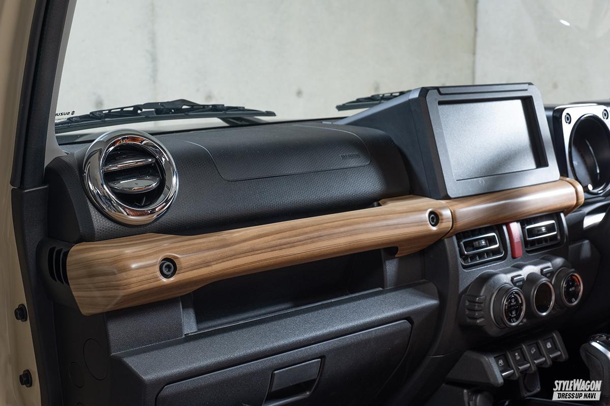 エクステリアは、センター部分にエアインテークやエアアウトレットを設けた立体デザインのボンネットや、マークレスグリル、オーバーフェンダーなどによって、ヘビー過ぎないクロススタイルを提案。光り物では、イカリングポジション付きフロントウインカーや、シーケンシャルウインカー搭載のフルLEDテールなど魅力的なアイテムを開発。インテリアはクロスタイルのエクステリアにバッチリとフィットするウッド調のインパネ(カラーは数タイプあり)や、アンティーク調レザーのシートカバーをリリースしている。リアルカーボン採用のステアリング(ウッド調も設定)とサイドにスエード生地をあしらったシフトノブなど、スポーティで高級感を重視したアイテムも多数揃う。