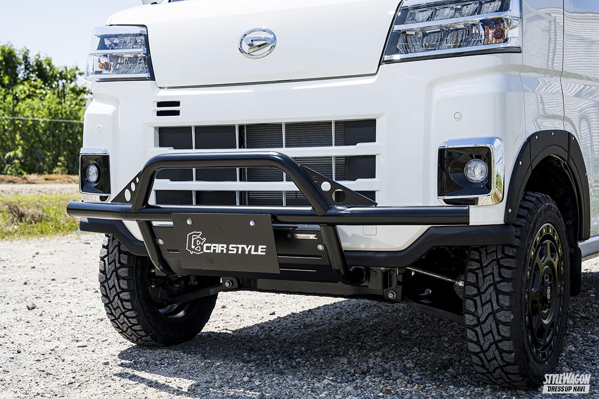現在、軽トラカスタムの定番といえばリフトアップ。そのスタイルを「アゲトラ」と命名し、先駆者として10年以上も市場を牽引してきたカースタイル。