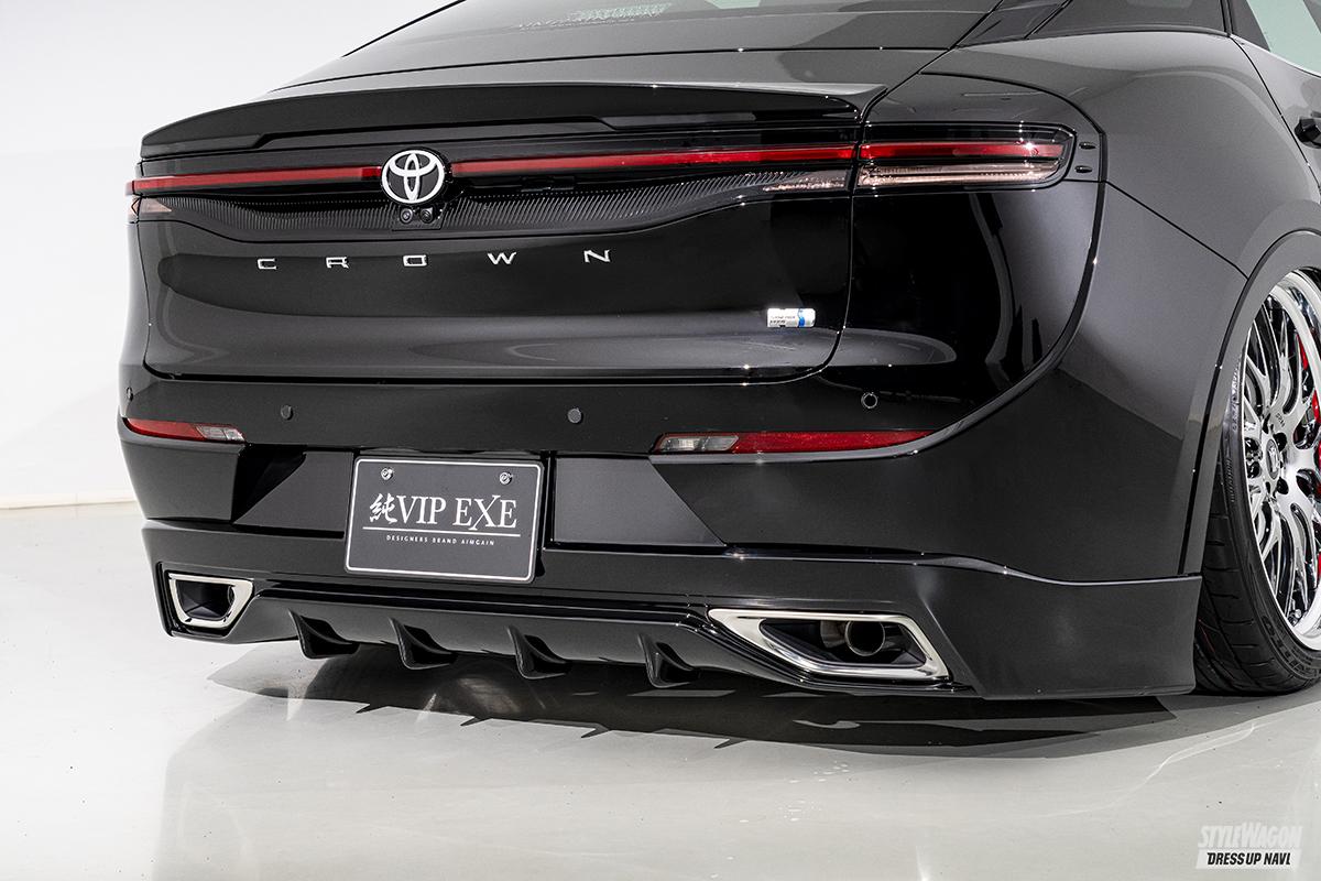 ただしセダン風なオーラを解き放てるのは、単にシャコタンだからではなく、EXEだからだということはお忘れなく。主張を抑えたジェントルなフォルムながら、新型クラウンの良さを生かしつつ、ダイレクトにプレミアム感を増せるのがEXEの魅力。サイズも控えめだが適度な量感も得られるその造形が、クラウンらしさを際立たせるのだ。