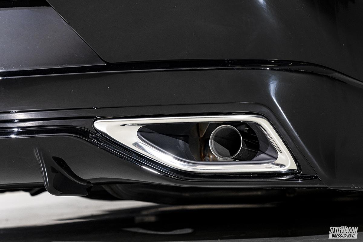 フロント&サイドはシンプルかつクリーンで、さり気なく立体造形を取り入れるなど、躍動感も上々。リアは存在感の強いディフューザースタイル。マフラーフィニッシャーによるアクセント付けも、プレミアム感大。