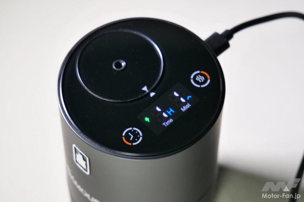 任意の調整は3段階で、噴射と停止時間をそれぞれ変える仕組み。レベル1はコンパクトカーに、レベル2はSUV・ミニバンに、レベル3はそれより広い空間にと、USB Type-Cケーブルによる給電のため、車中のみならず使用範囲は幅広い。さらに、それとは別にオートオフ機能もあり、1・2・4・6時間の個別設定も行なえる。