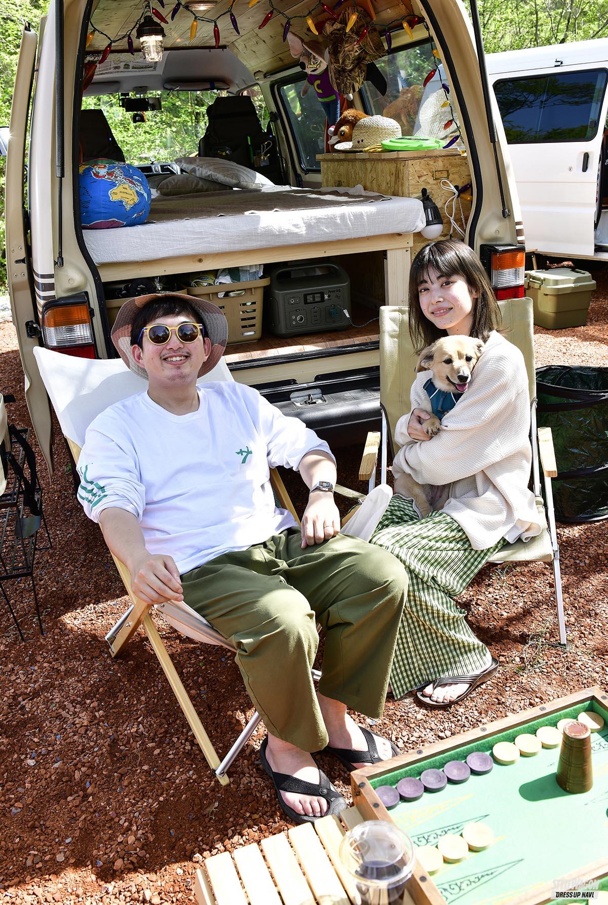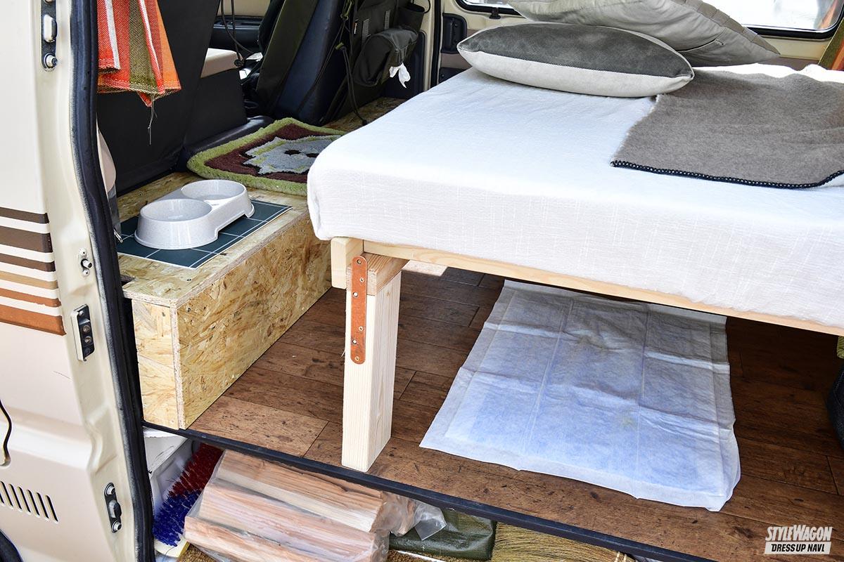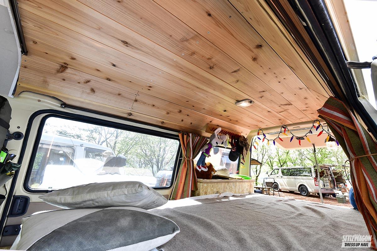 バンライフのクルマの魅力にハマってしまった2人は、クルマを自分たちで作ることを目指した。ペットと一緒に旅行できるように、ペット仕様のレイアウトにはこだわっている。ベッドと運転席の高さを合わせて、前後の移動をしやすいようにしたり、ベッド下にトイレを設置するなど、工夫が盛りだくさん。自分たちの使いやすいクルマを作った結果が、このスタイルになった。こだわりのアイテムを飾って、自分たちの特別な空間を作っている。