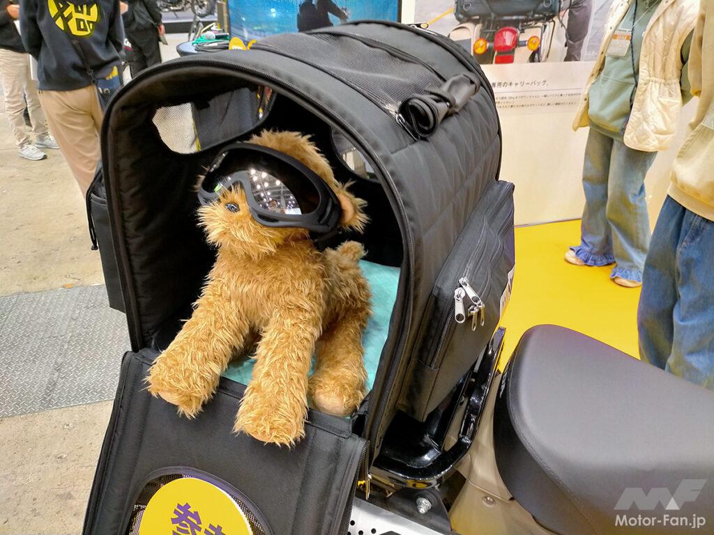 可愛いワンちゃんとの“タンデム走行”を実現するために設計・製作された、ペット運搬用バッグ「WAN DEM(ワンデム)」。バッグ本体はペットの安全性と快適性を吟味し、厚手の素材を採用。出入口はファスナーによる全開式とし、ペットの出入りのしやすさを考慮。