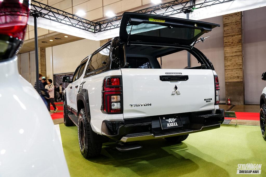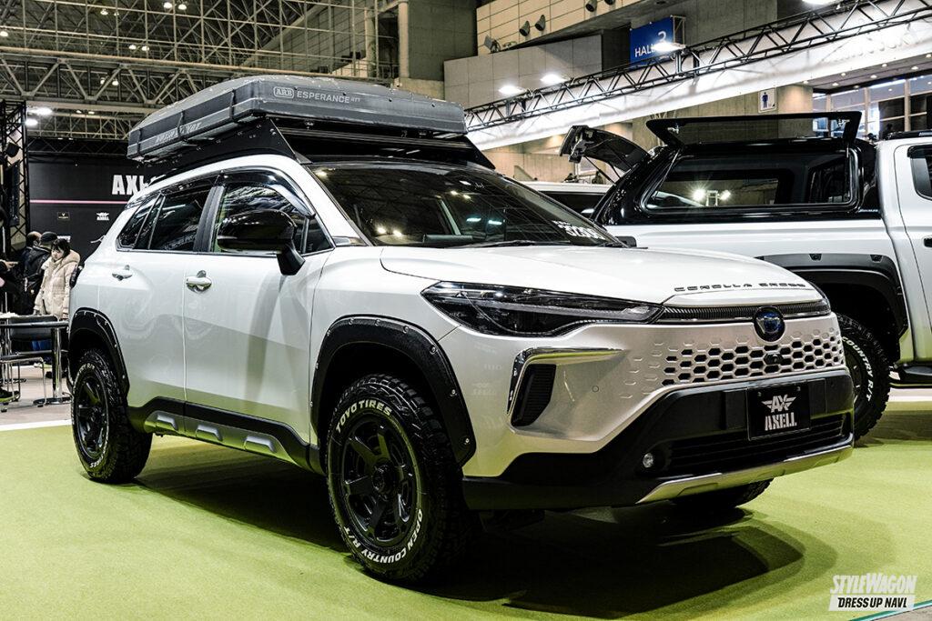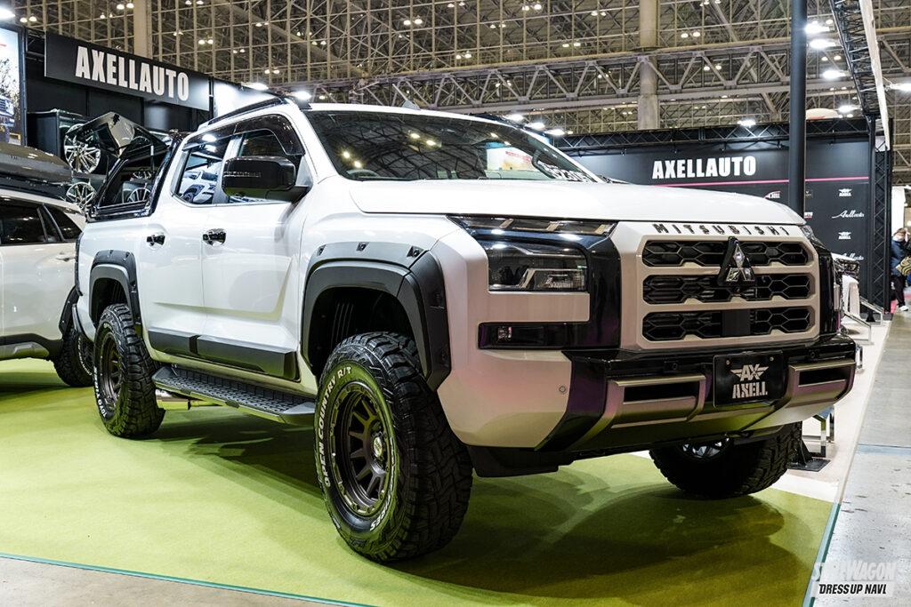 ドレスアップにとどまらず、チューニングまで様々なジャンルに強く、またコンプリートカー製作に精通するアクセルオート。会場には40アル・ヴェルを中心にLM、カローラクロス、トライトンなど、バラエティに富んだモデルを並べていた。地味に目立っていたのはカローラクロス。タイ純正パーツを導入した“海外仕様”でまとめられていたのだ。パッと見では車種がわからないほど印象が違っていて……。昨年既にタイのGRバンパーを使用した実績のあるアクセルオート、今回の“海外仕様化”もお手の物か。