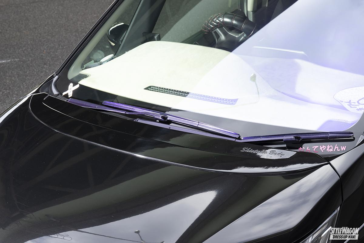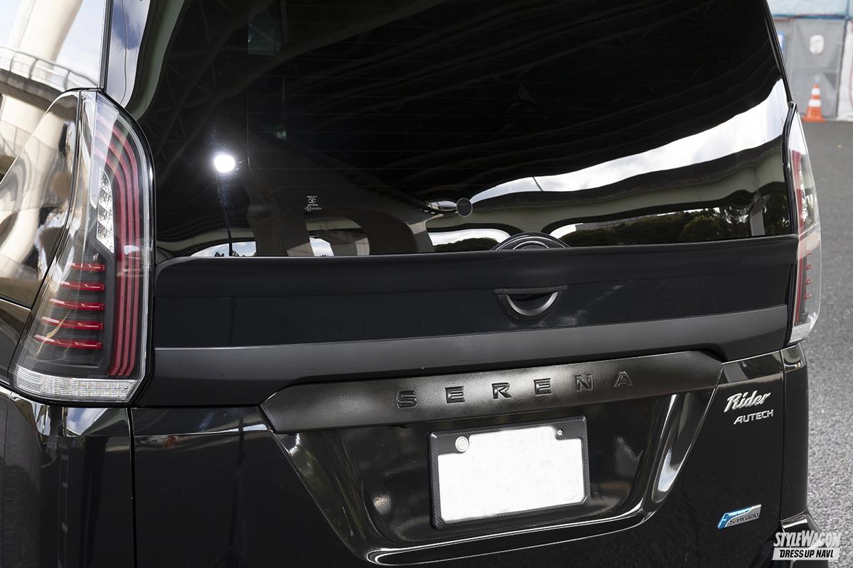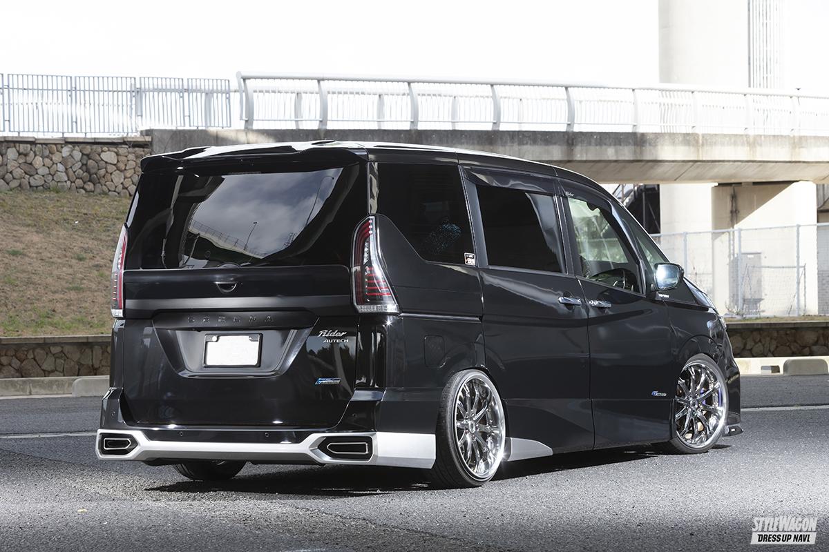 C27ライダーSハイブリッドという希少モデルに乗る石川さん。「セレナは燃費の良さと、スタイルで購入しました。もともとカスタムは好きだったので、ちょっとずつカスタムしています」。カスタムの方向性は「純正の形を活かしながらカスタムするように心がけています」ということで、ライダー純正のエアロをベースに、セレナ乗りにはおなじみのKDプロセス製のリップや、シオタクボディ製ボンネットスポイラーなどで個性をアピール。ナンバーフレームやワイパーブレード、ブレーキキャリパーにパープルの刺し色を加えることで、上質な雰囲気は残しながらオリジナリティをアピールしている。