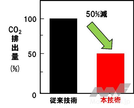 今回、逆浸透(RO)膜で培った技術を駆使して、水素親和性材料を導入することにより、細孔構造を高度に制御した分離膜を新たに開発、これを用いた水素精製において、世界最高レベルの透過水素純度98%を実現した。これにより、これまで透過水素純度を高めるために複数回のろ過が必要だったところを、1回の分離で純度を高めることができ、従来の分離膜モジュールと比べ、初期投資が削減できるだけでなく、省エネルギー化が可能となり、CO2排出量を50%以上削減することが期待できる(図1)。