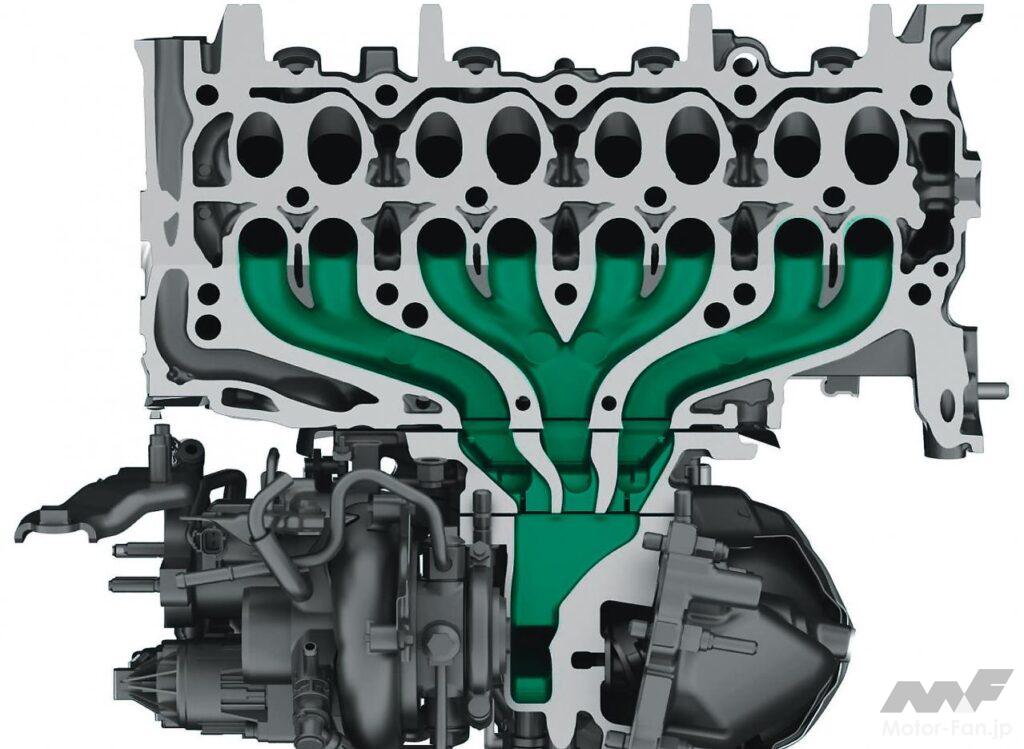 マツダのSKYACTIVエンジンでは、排気脈動を高回転出力の向上より掃気によるノッキング抑制のために使い、そのために排気干渉が起こりにくい4-2-1排気管を採用した。ターボエンジンでは排気エネルギーを最大限利用するために、排気効率を無視しても短い排気管を使う。当然排気干渉が発生するわけだが、やはりマツダの2.5l直4ターボエンジンでは、180度位相となる#1と#2をまとめつつ管長を短くするために、4-3-1というユニークな排気システムを開発し、ターボのネックとなるノッキングを回避する掃気効果を狙っている。