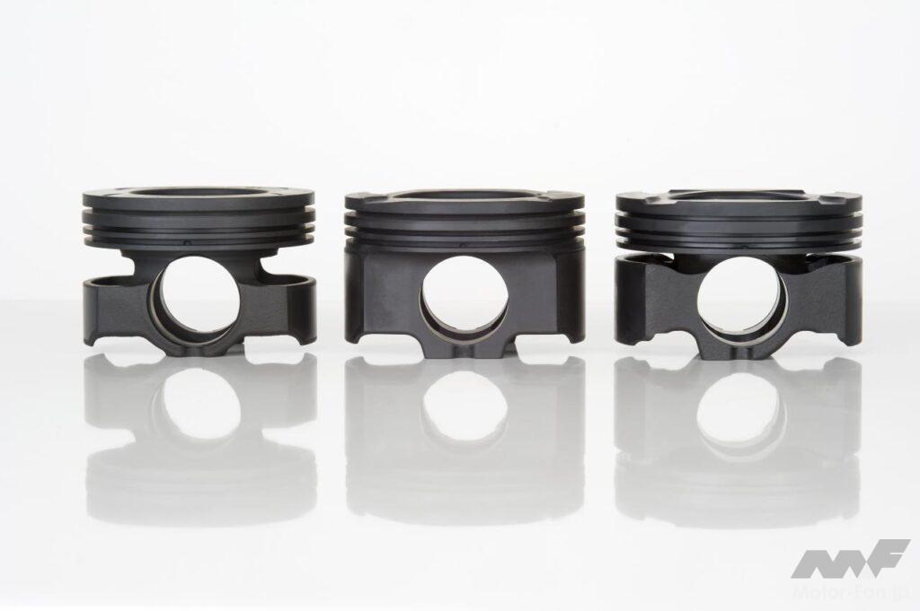 ピストンは燃焼ガスを直接受けるため、頂部では300°C、下部では140°C近傍と温度勾配が’非常に大きい。圧力と熱負荷を受ける上に、高速の往復運動を繰り返すため、慣性力の影響が非常に大きく、可能な限り軽く作る必要がある。冷却は吸気と燃料もある程度寄与するが、専らオイル冷却に頼っている。クランクケースからの飛沫だけでは足りないので、上部の内側にクーリングチャンネルを設け、オイルでピストンの上部の冷却を行なう。鋳造であれば中子で作れるこの孔も、鍛造では一体では作れないので、上部と下部を別に作ってレーザー溶接する。