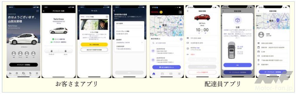 配達員は、専用アプリにて所定の時間だけ利用を許可されたデジタルキーを利用してクルマの解錠をして配達を行う。終了後は施錠をし、配達の状況を専用アプリに登録するので確実に作業を行うことが可能。