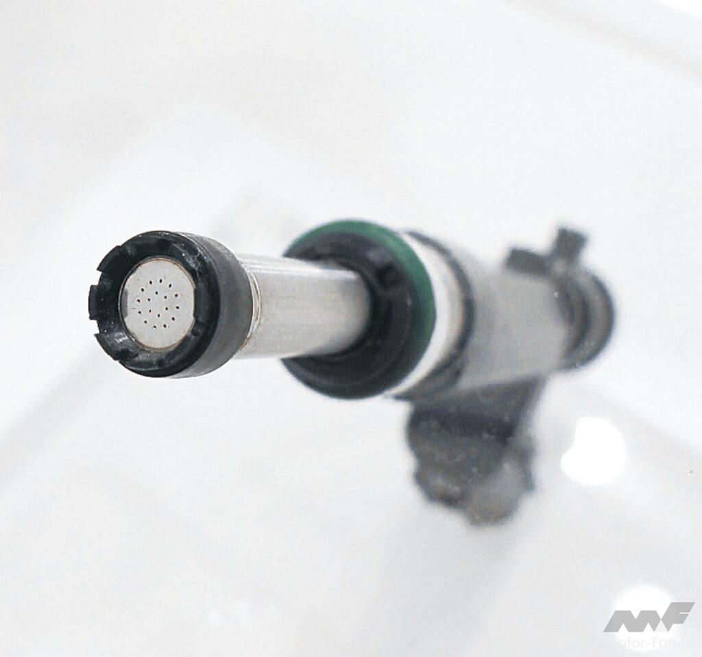 従来型インジェクターの噴孔から吐出される燃料粒径が平均70μmなのに対し、デュアルインジェクターでは30μmへの微細化を実現している。従来構造のままでも、噴孔径を微細化して多孔化すれば燃料粒は微細化できるが、そのためには精密加工が必要となり、生産性やコストの面で課題が残る。DI(筒内燃料直接噴射)化は、高圧ポンプなど構成部品が複雑化する上、インジェクターも反応速度の高いものが必要で、スペース効率やコストの面で小型車には採用が難しかった。そこでインジェクターをデュアル化し、1本あたりの噴射量を減らすことで、より小径な噴孔からの燃料供給を実現した。