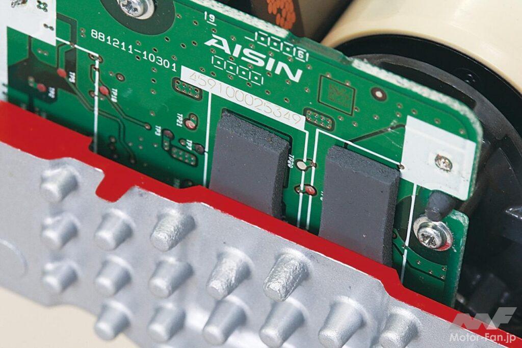 「最初はよくわからないので、機械式と同等くらいから話を始めました。すると500Wクラスのポンプが必要になります。当然12Vバッテリーからは電源がとれなくなってしまう。じゃあハイブリッド・バッテリーからとるか、となるとそれは“あるべき姿”と違うだろう、ということになりました」と開発を担当したアイシン精機のエンジニアは難しさを語る。最終的には最大流量80ℓ/分、12V電源で入力160Wのポンプに落ち着いたが、開発途上では、回路・モーター・ポンプの各セクション間の協業が欠かせなかった。