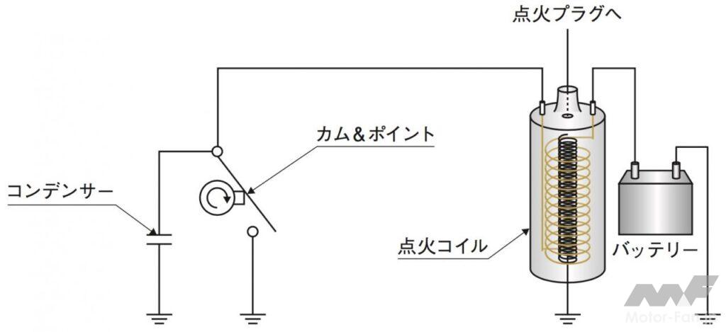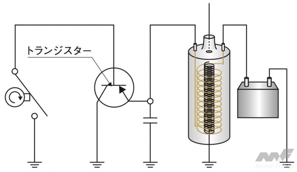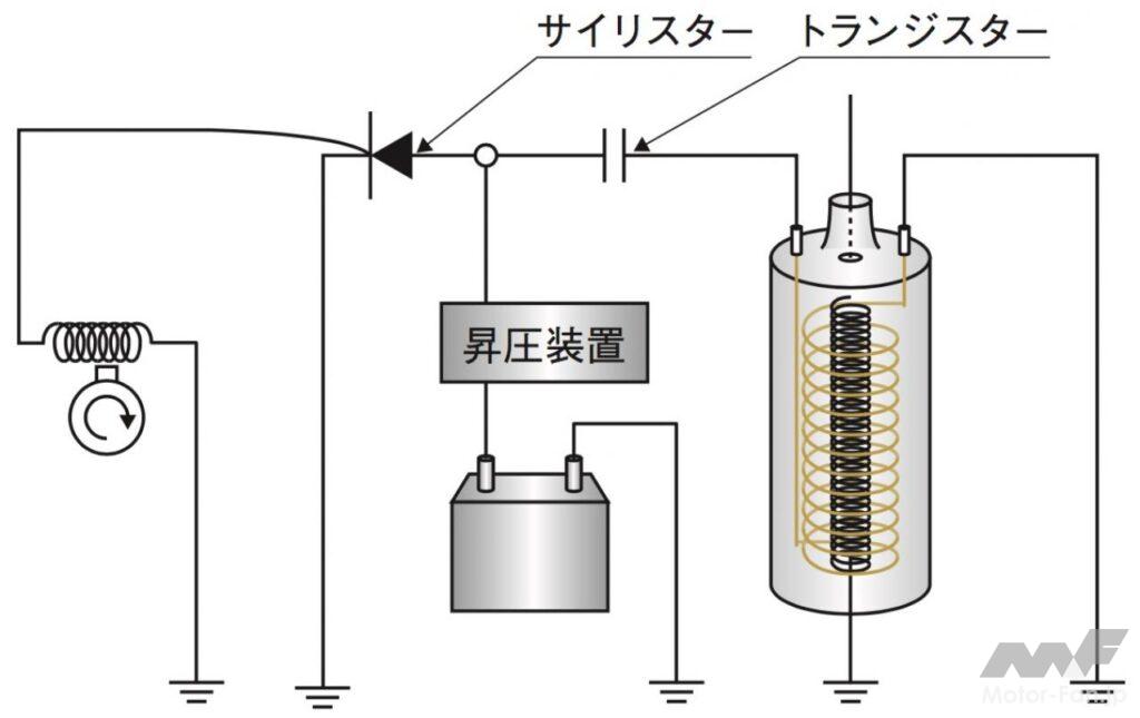 自動車の黎明期から、点火エネルギーは電気を用いてきた。点火プラグに流す高電圧は、自己誘導作用と相互誘導作用という、ふたつのコイルの特質を用いて作られている。