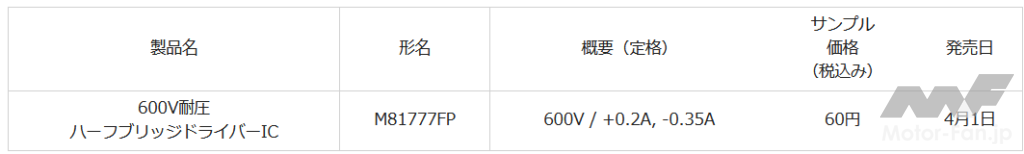 ※7 三菱電機600V耐圧ハーフブリッジドライバーIC「M81776FP」