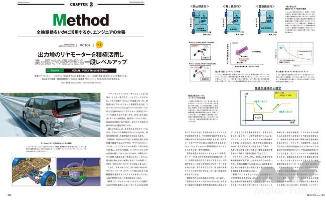最新AWD技術の最大のテーマが「車両姿勢制御」であり、特集のクライマックスです。どのメーカーも最終的なゴールは「車両姿勢制御を用いて、オンロードからでもハンドリングや乗り心地のレベルアップを目指す」ことで同じですが、そのアプローチはそれぞれに細かな特徴があります。大別すると、前後独立モーターで実現するか、電子制御カップリングで実現するか、つまり前後を繋ぐプロペラシャフトの有無に分けることができます。前者を選択するのが、トヨタのノア/ヴォクシー・ハイブリッド、日産のノートe-POWER 4WD、三菱のアウトランダーPHEV。後者を選択するのが、マツダのCX-30/MX-30、レクサスのNXです。これらの最新事例をもとに、エンジニアの主張をまとめました。