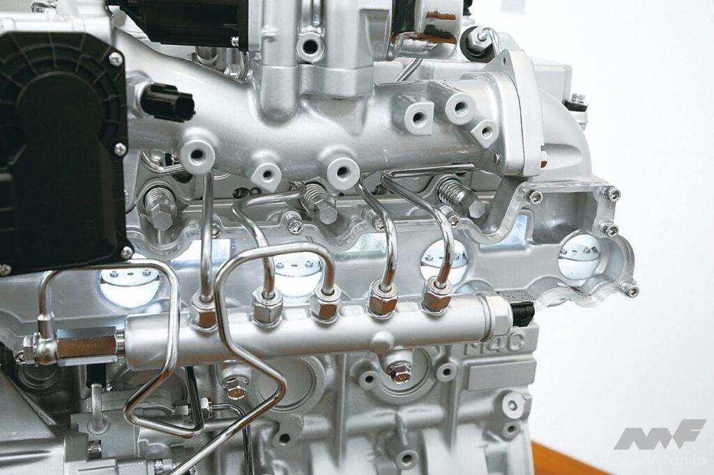 既存エンジンをベースに現行の国内排ガス規制に対応したのが、直4・3.2ℓ縦置きの4M41型である。オリジナルは3代目パジェロがデビューした1999年に登場。分配型噴射ポンプだった噴射系をコモンレール化した。システムはデンソー製で、噴射圧は1800bar。ソレノイドインジェクターは0.16mm径6噴孔を持つ。