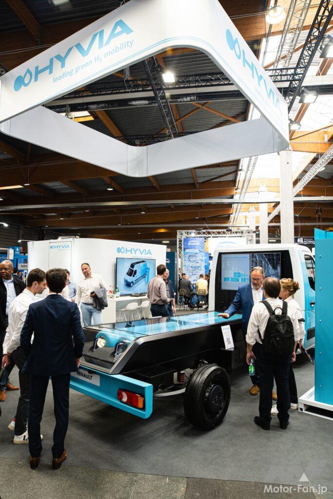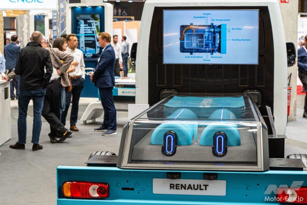 ハイボリューションに展示された車両は、同社が開発中の水素技術を搭載したルノー『マスターシャーシキャブH2-TECH』のプロトタイプである。『マスターシャーシキャブH2-TECH』は、約250kmの範囲においける集中的な使用(近距離輸送)に最適である、とされる。最大積載量は1,000kgであり、商品輸送に適合した20m³の大容量バンバージョンなど、オーダーメイドで変換できるように設計されている。『マスターシャーシキャブH2-TECH』には30kWの燃料電池、33kWhのバッテリー、それに700バールで3kgの水素を含むタンク(1.5kgのタンク2つ)が装備されている。
