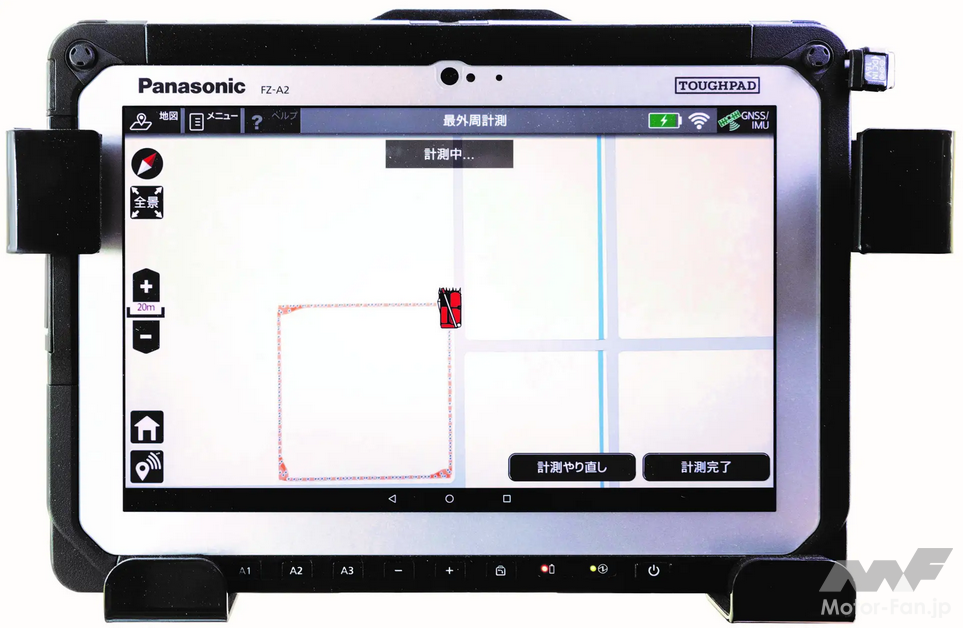 ・コンバインは、衛星(GNSS)から受信する位置情報と、固定基地局や電子基準点から受信する補正情報の2つの電波で高精度に位置を求めている。本機はRTK-GNSS方式により数cm単位の精度の位置情報を取得し、高精度な作業を実現している。