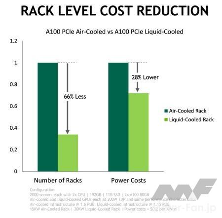 NVIDIAは、液体冷却による電力の節約と密度の向上を確認している。
