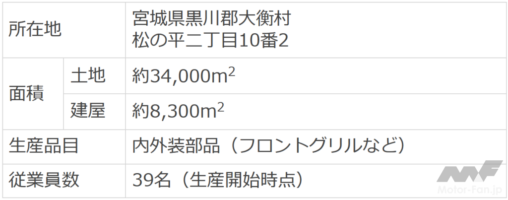 ■豊田合成東日本 宮城大衡工場の概要