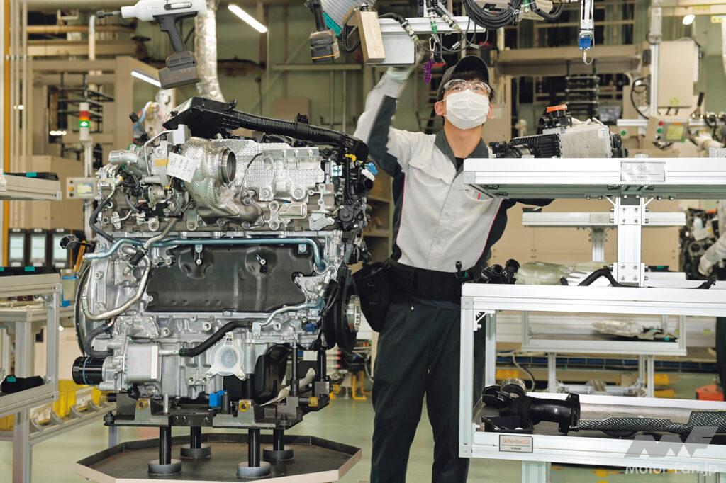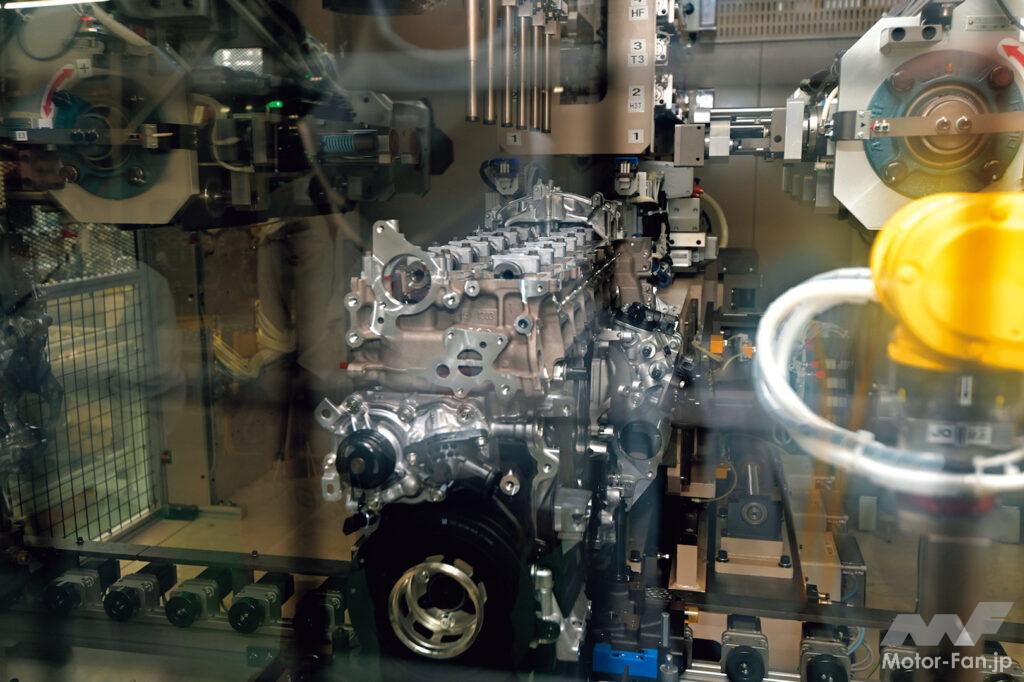 そう。これがいまのマツダの常識だ。ICE製造工程に専用の加工機や計測機はほとんどなくなった、ICEブロックの削り出しは全ブロック共通のマシニングセンターを使い、その日の気温や切削用モーターの発熱などによるジグの変位量まで見ながら自動加工する。この6気筒はどうなのだろう。4気筒と同じ加工機を使うのか。その部分は見せてもらえなかったが、初代SKYACTIV-G/SKYACTIV-Dの導入とともに一新された設備は汎用性と高精度で一皮も二皮も剥けた。だから、あれだけ高価な部品を使ったICEでも製造原価を抑えられた。