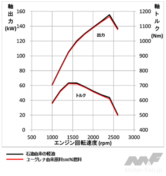 右:ユーグレナ由来原料100%燃料