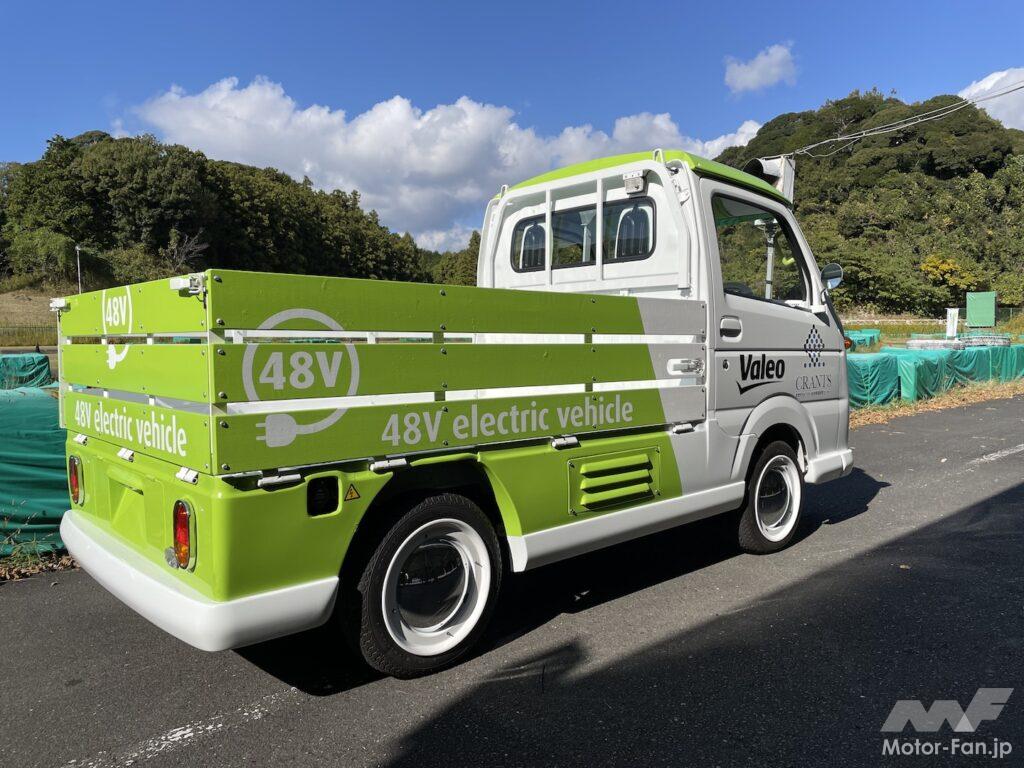 試乗会には48VのeDrive(15kW)を前後軸に備える軽トラックも用意。こんなに小さなモーターでも軽トラが普通に走るんだ、と新たな気付きを与えてくれる試作車である。個人的には、ブレーキ時の挙動がもっと洗練されるとさらに好印象になりそう。