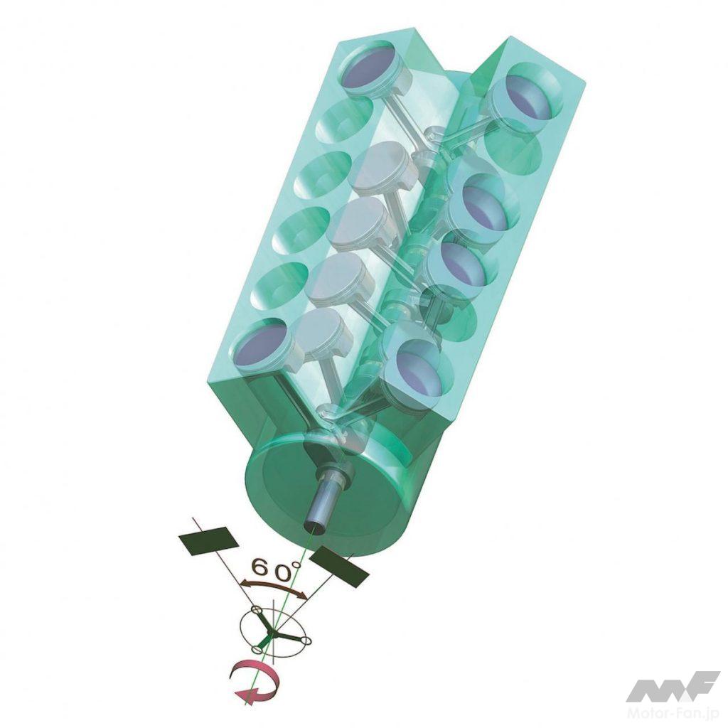 直列6気筒は120度ずつの3スロークランクを持ち、トルクの連続性を有することに加え、クランクセンターを中心に1/6 番、2/5 番、3/4 番でピストンの上下動がそろうため、エンジンの擂りこぎ運動を抑えることができることなどから、完全バランスのエンジンと評される。その直列6 気筒を2 基、V 型にしたのがV12。理論値は60 度だが、先述のように片バンクだけでバランスがとれているため、ほかのV 型に比べて制限が少ないのが特徴だ。