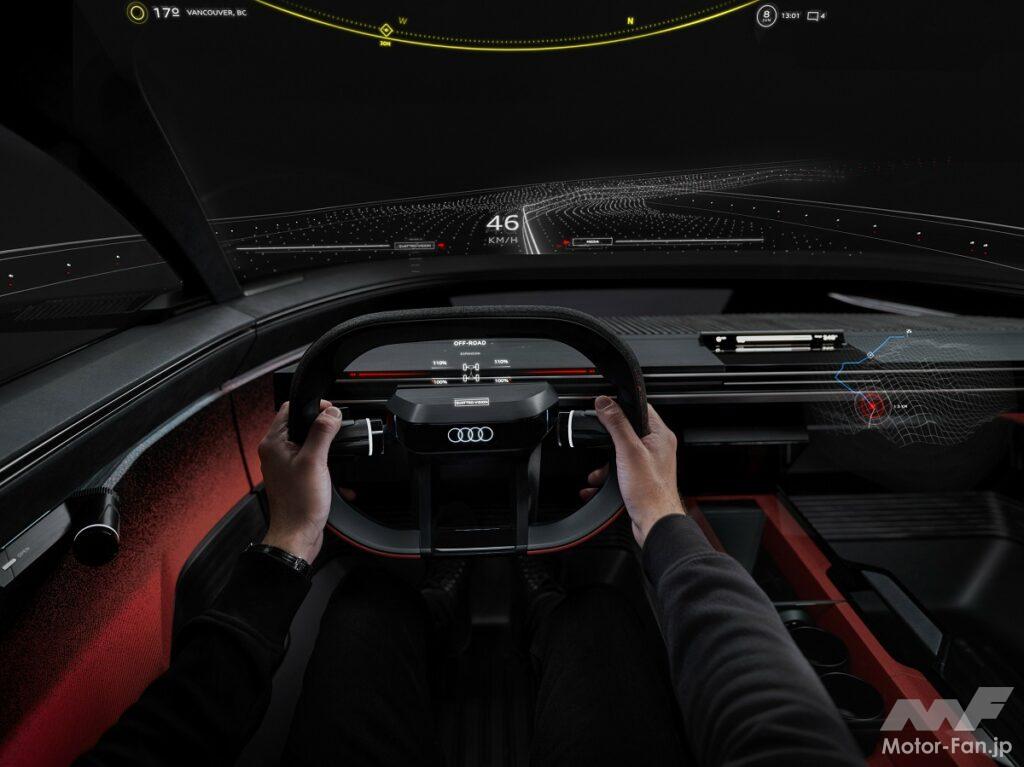 アクティブスフィア・コンセプトが自動運転モードで走行しているときは、ダッシュボード、ステアリングホイール、ペダル類は見えない位置に格納される。特にフロントシートでは、ドライバーの前に、フロントエンドまで広がる開放的なスペースが出現する。クリアな視界を確保するために、ひとつのフレームの中に完全な1枚のガラスが採用されているので、クリアな前方視界が確保されている。ドライバーが自ら運転する場合は、ダッシュボードとステアリングホイールがフロントウィンドウ下から展開する。さらに、ドアに設置されたMMIタッチレスコントロールを介することで、ウィンドウの開閉やシートの調整などを、手に留まらず目で操作することができる。