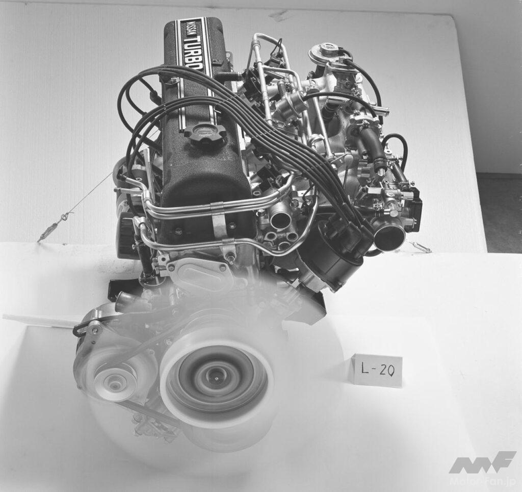 日本で初めてターボチャージャーを備えた市販車用エンジンとして1979年12月に登場したL20ET型。当時のセドリック/グロリアに搭載された。