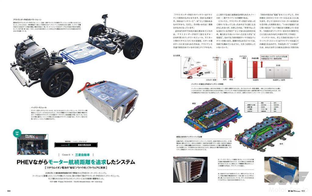 三菱自動車工業にはPHEVシステムに載るBMSについて取材しました。アウトランダーPHEVはその名のとおりプラグインハイブリッドではありますが、同社はモーター走行領域を拡大するために、最新世代ではセル形式を含め刷新。HEVなのにもはやBEVというバッテリーの非常に難しい使い方について、勘所をエンジニアに訊きました。