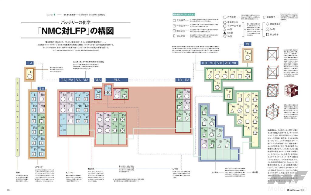 続くふたつのコンテンツ・バッテリーの化学/バッテリーの経済学は、2023年のバッテリー最新事情を紹介。前者は、中国勢を主に急進著しいLFP:リン酸鉄系リチウムイオンバッテリーとは何物なのかをテーマに、現在の主流であるNMC:ニッケルマンガンコバルトの三元系リチウムイオンバッテリーとはどのような得失差があるのか、そもそもさまざまな元素を極材で使い分ける理由とは、といったところまで解説しています。