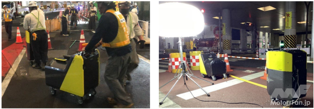 夜間工事の現場では、照明や警告板などの電気設備の利用のために電源が必要となるが、通電していないケースが多く、一般的に軽油やガソリンを使用する発電機が用いられている。しかし、軽油・ガソリン発電機はCO₂の排出をはじめ、騒音、振動、臭気などの問題があり、周辺環境に支障をきたすため、その改善が課題となっている。