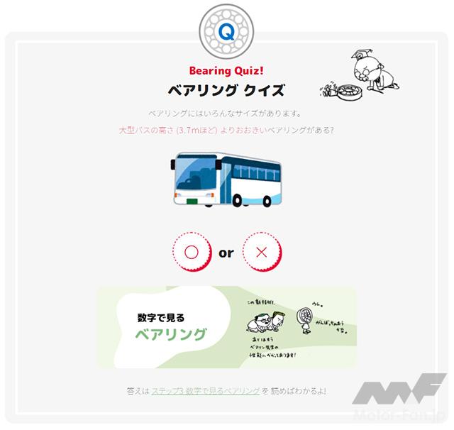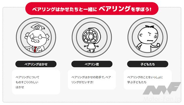 一般の方を対象とした「ベアリング入門」では、親しみやすいイラストのキャラクターが登場し、対話形式でクイズなどを交えながらベアリングの歴史や魅力を解説。子どもから大人まで、楽しみながらベアリングの知識を学ぶことができる。技術者を対象とした「ベアリングのABC」では、アニメーションや図表を活用し、文章やイラストのみでは分かりづらい物理的な内容を、より視覚的に分かりやすく伝えてくれる。