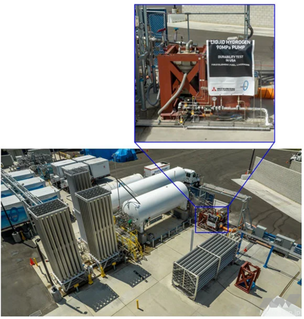 液化水素昇圧ポンプは、水素を液体状態で昇圧することによって、気体の水素を昇圧する方式に比べて、エネルギー消費量を約4分の1に抑えることができ、水素社会における環境負荷低減に貢献する。三菱重工は、原子力発電所向けをはじめとする各種産業用ポンプ納入実績で培った技術と経験の下、90MPa級超高圧液体水素昇圧ポンプを開発した。