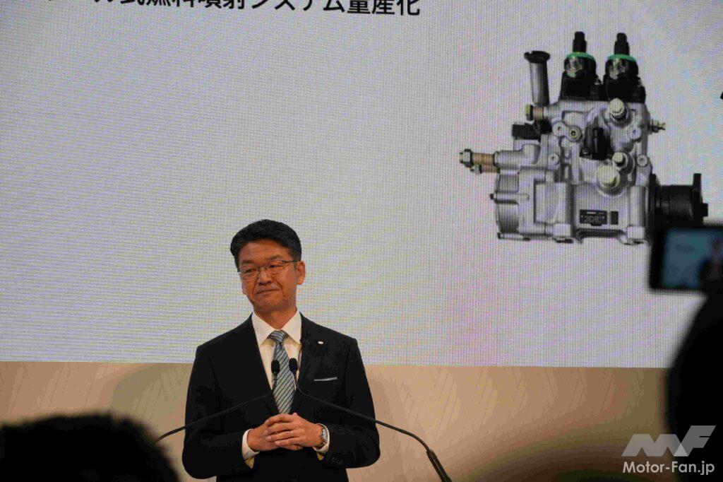 プレスカンファレンスに登壇した林 新之助デンソー社長は、電動化とソフトウェア領域への人材増強の方針を発表。社員採用と成熟領域からの人財シフトなどを推進し2022年から2025年までの4年間で計4000名の人財を増やすという、同社の取り組みをまず述べた。そして3つのテーマを定めた、その内容を解説した。