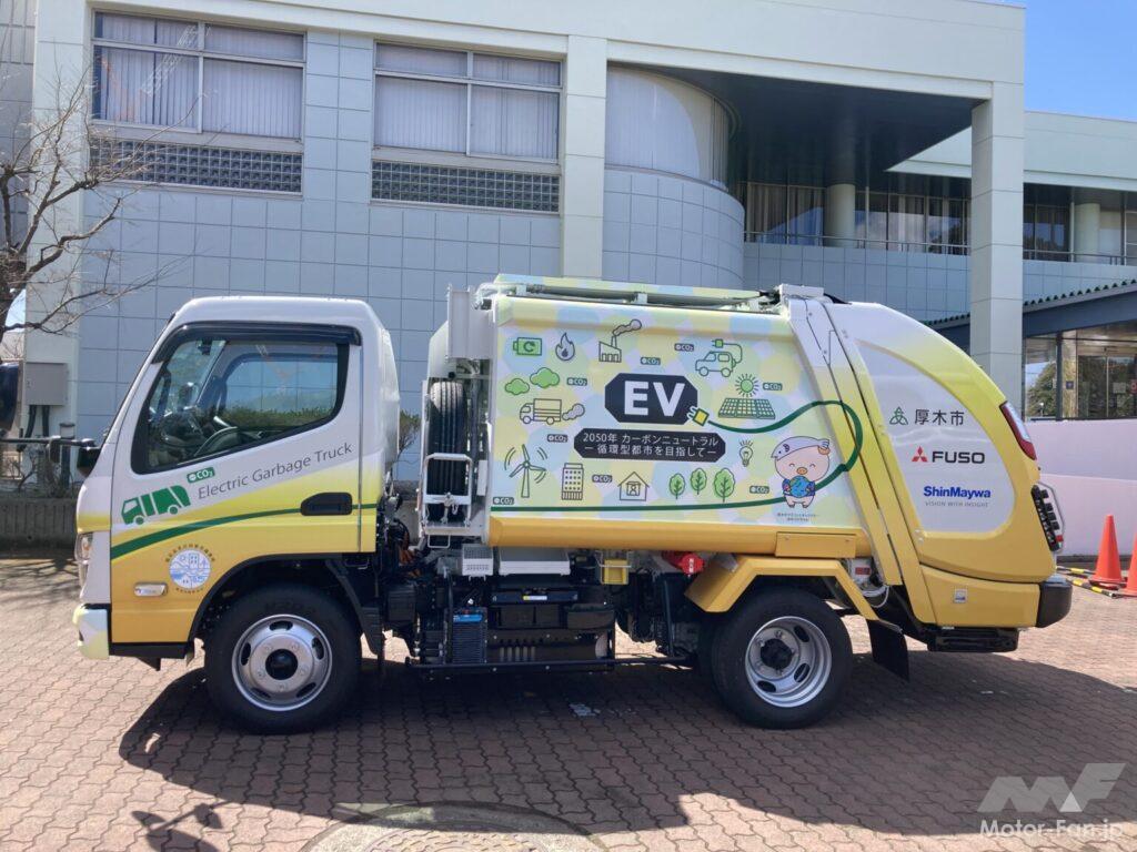 バッテリー駆動で走行時に排出ガスを一切出さず、振動や騒音が少ないゼロエミッション車両の「eCanter」ごみ収集車は、深夜や早朝での稼働にも適しており、地域の環境に配慮した収集作業に貢献する。今回厚木市に納車した当車両は、新明和工業が架装を行った。