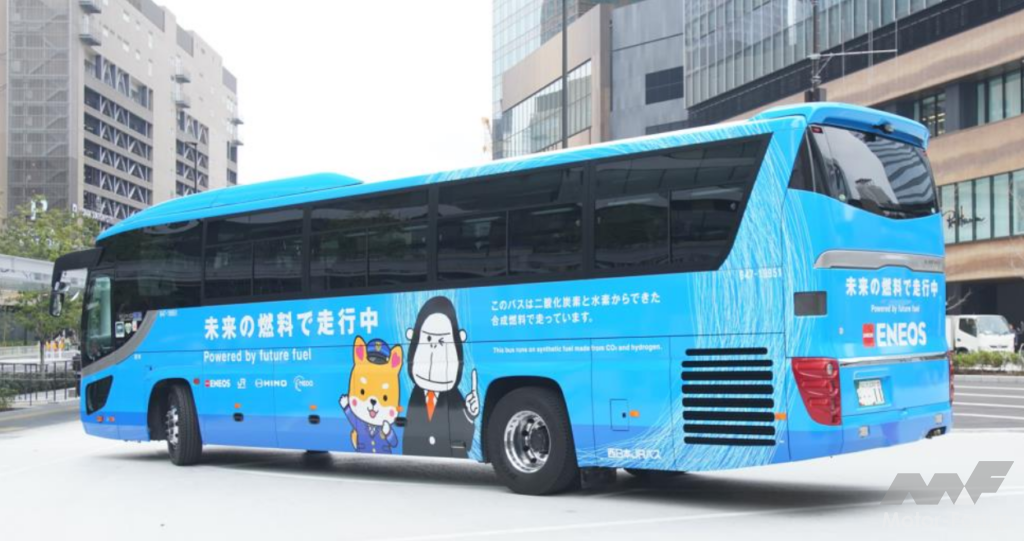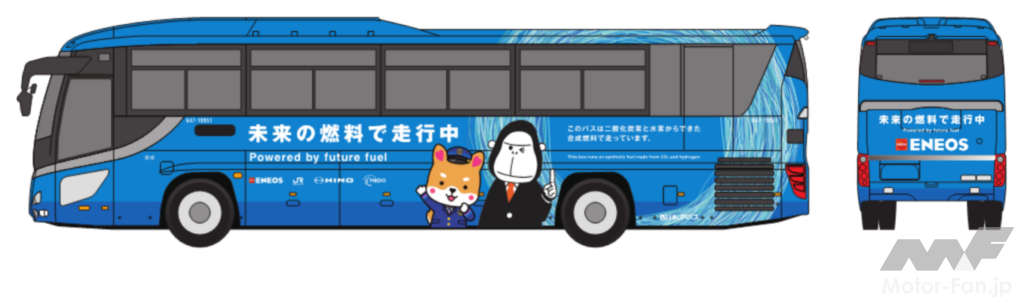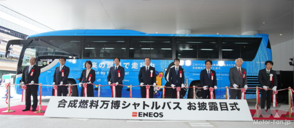 お披露目式では、独自のラッピングが施されたシャトルバスに来賓者が乗車し、合成燃料での走行が体感された。大阪・関西万博期間中には、万博シャトルバスが大阪駅(うめきたグリーンプレイスバス駐車場)と大阪・関西万博会場間を走行する。来場者に合成燃料を使用した万博シャトルバスに利用され、一足早く未来の燃料が導くカーボンニュートラル社会が体験される。