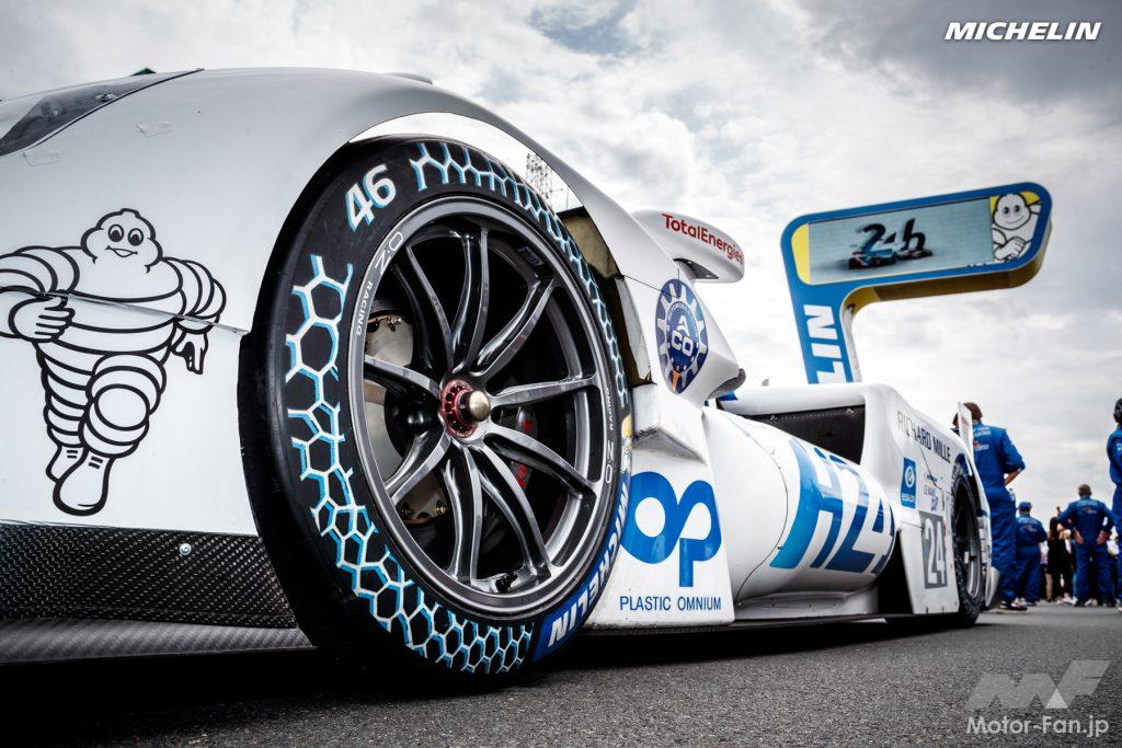 また『VISIONコンセプト』に体現させた技術的特徴の一つである「100%持続可能」に関連するのが、このレーシングタイヤだ。2021年6月に開催された『Movin’ On Summit』で初公開された、46%の持続可能な材料で作られたミシュランの最初のタイヤである。こちらは、性能を損なうことなく持続可能な材料を多く使用するミシュランの能力を示している。
