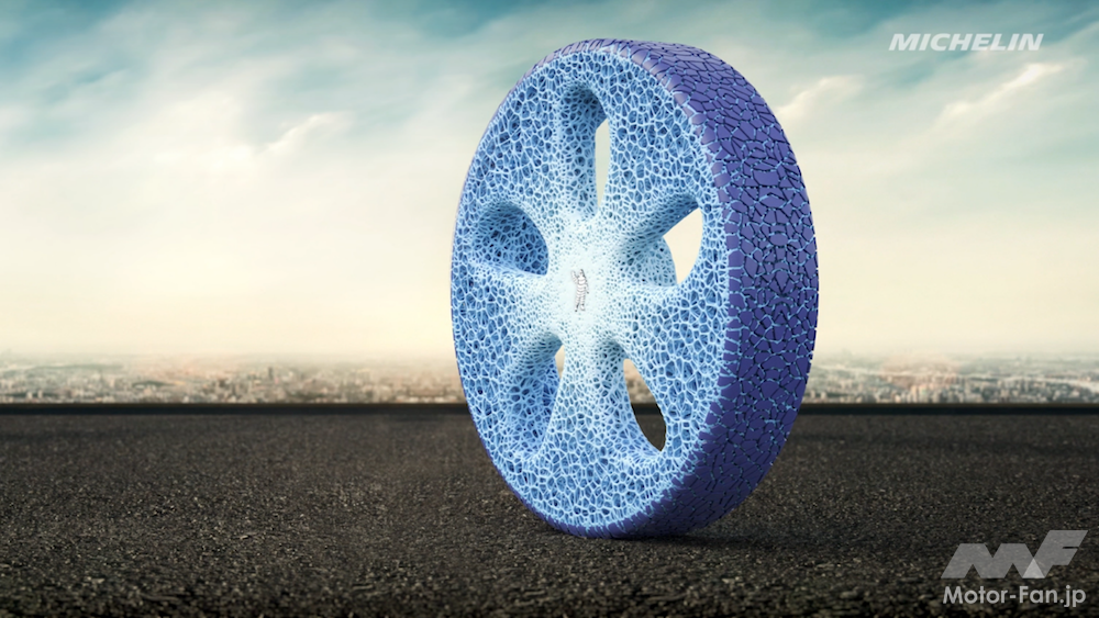 過去の当連載で記載したように、ミシュランは2017年に、『VISIONコンセプト』をその象徴として、同社の考えるタイヤのあるべき姿を示してきた。『VISIONコンセプト』が体現する重要な技術的な特徴は4つ。「エアレス」「リチャージャブル」「コネクテッド」「100%持続可能」であった(詳細は過去記事参照 https://car.motor-fan.jp/tech/10018506)。