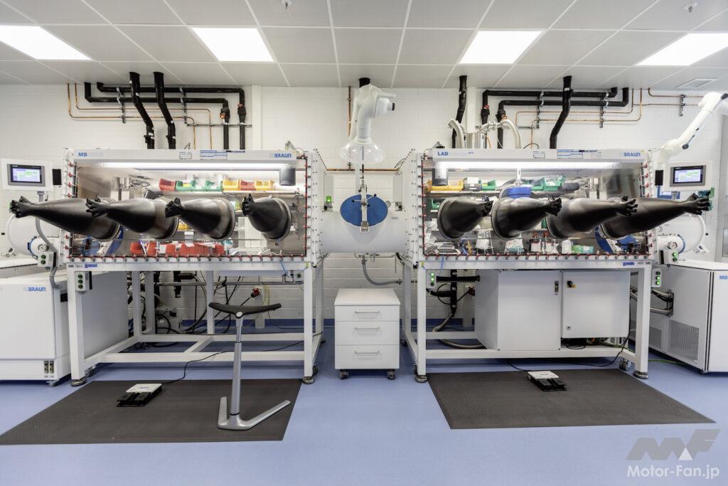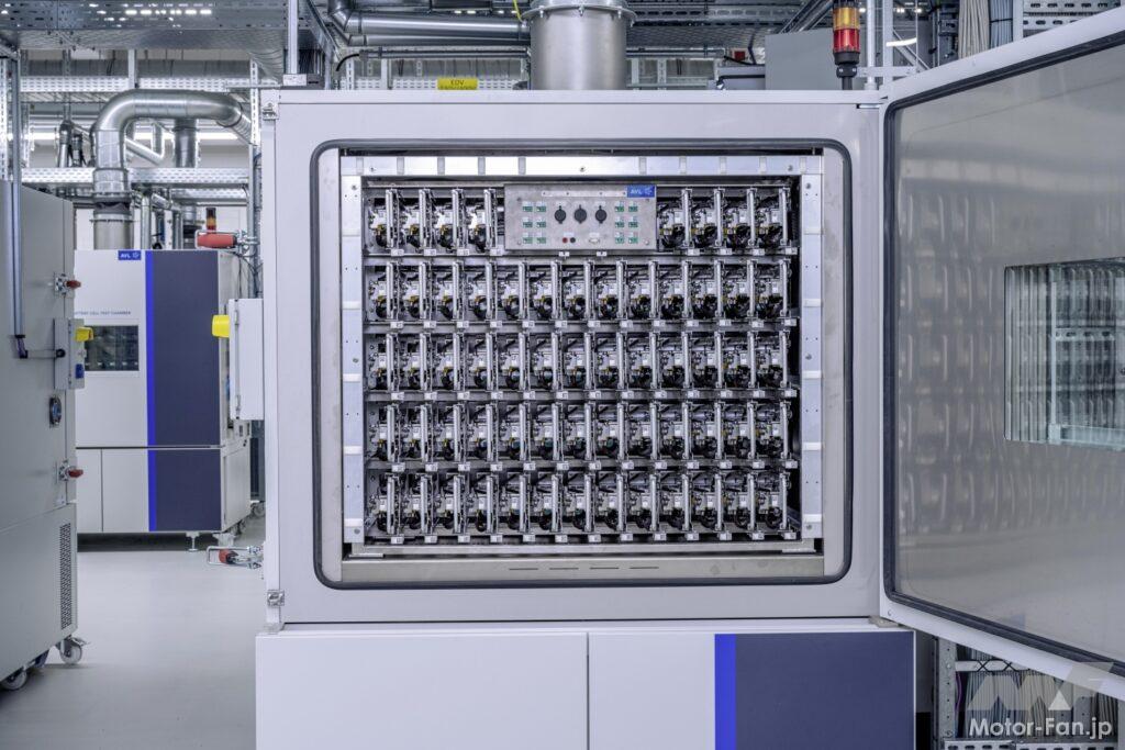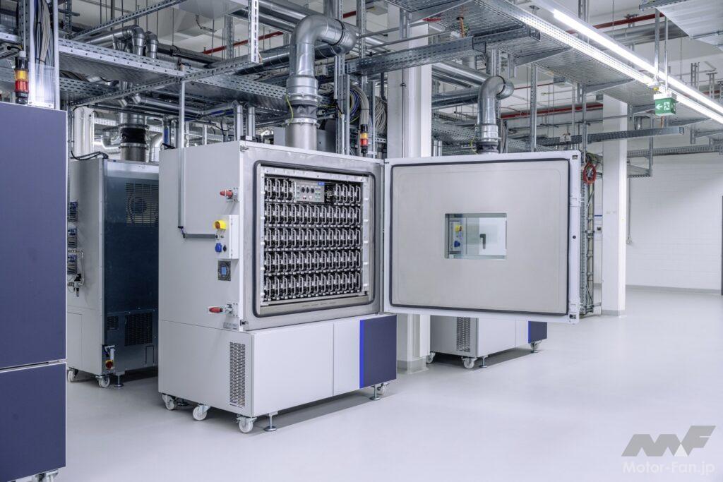 研究室は4つの領域に分かれている。セル開発研究室では、新材料の適合性が評価され、化学製剤、電極材料、およびプロセスが開発される。有望なイノベーションは、ここから隣のパイロットラインに直接送られ、小規模生産が行われる。分析ラボでは、研究者がセルのコンポーネントと原材料とを分解して、競合分析と品質保証を実験する。環境安全研究所では、セルは6つの特別なチャンバーで耐久性テストを受け、電気的、熱的、または機械的ストレスに晒される。新しい試験方法もここで研究される。電気試験分野では、すべてのフォーマットおよび電力クラスの実験室およびシリーズセルが電気的に測定され、性能がテストされる。
